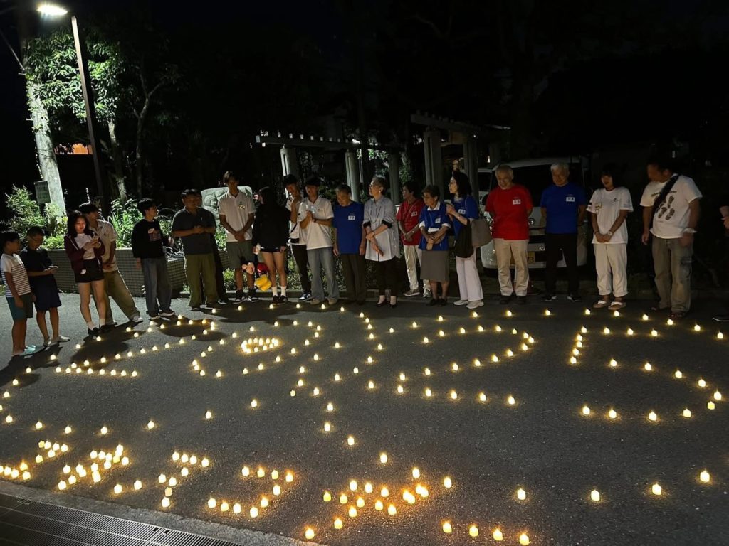 第一部は戦後80年、世代を超えて『平和について語ろう会』、第2部は13時から屋外でバザー、マルシェ、マリンドリームなど、第3部は、18時から、平和への願いを込めてキャンドルライトを灯しました。
